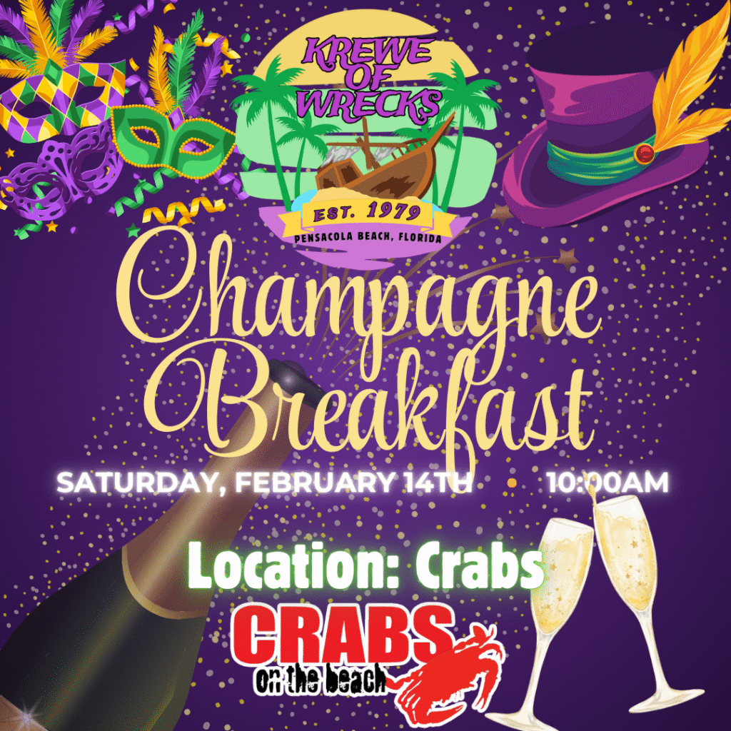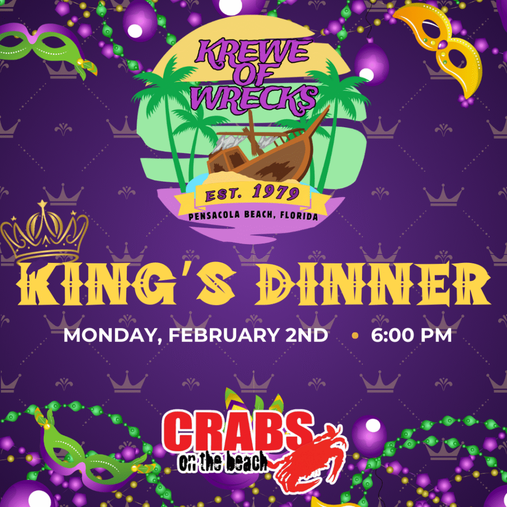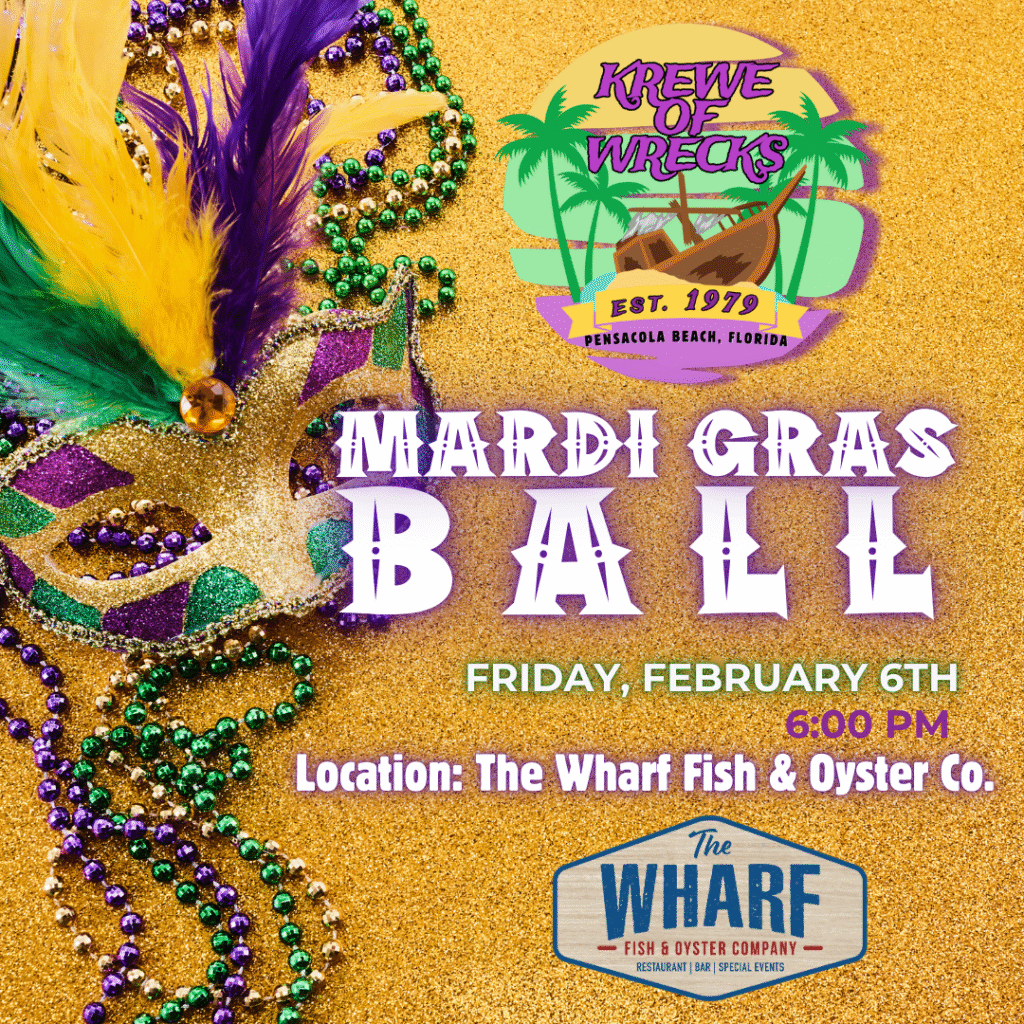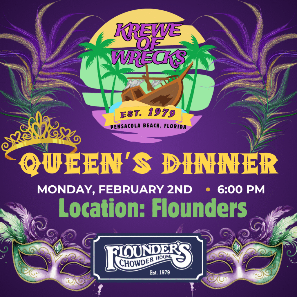 Always a fun time! Come out and join us in the Pensacola Beach/Krewe of Wrecks Mardi Gras Parade and see all the other krewes and catch some beads, toys, etc. Parade will be along Via de Luna to Gulfside Pavilion. Come early, parking lot fills up fast. There will be a Post Parade Party and Awards Ceremony at the Gulfside Pavilion after the parade. Come see and meet the float riders, learn who wins the coveted float awards. Open to the public, no charge.
